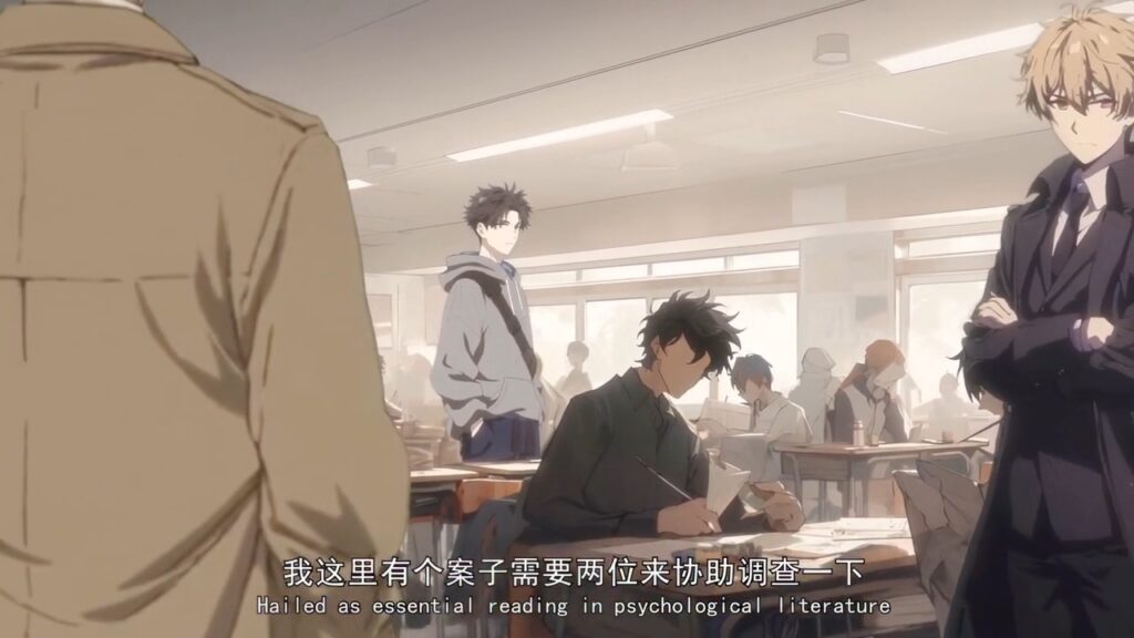 2枚目はよく見ると、モブにAI特有の破綻が見られるのですが逆にアニメらしい省力表現として演出の一部になっていました。