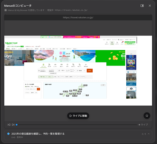 manusはゴールを渡すと、「じゃあこう進めますね」と裏側で動いてくれる感覚があります。